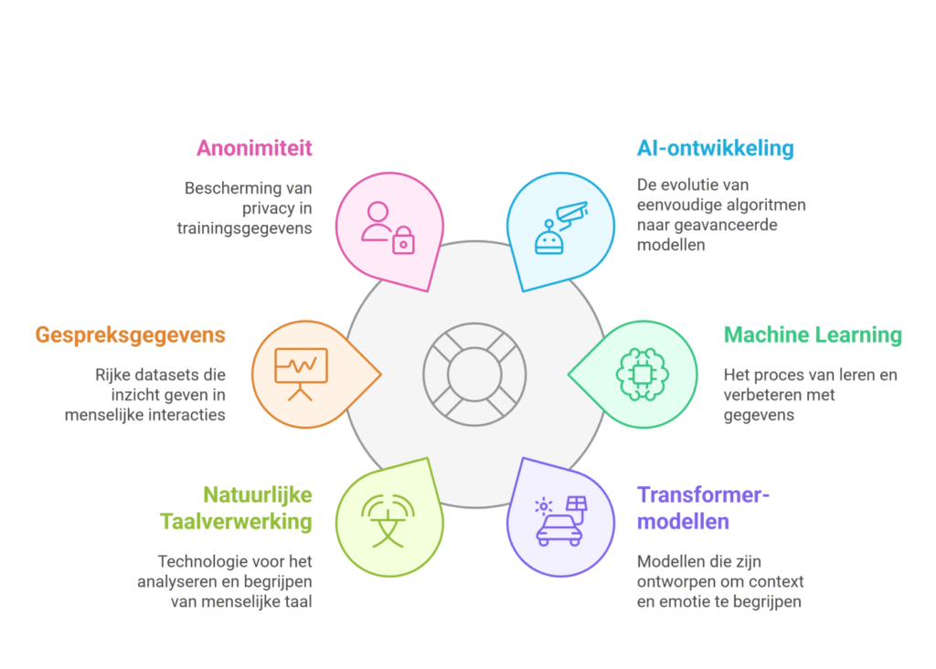 Een belangrijk thema in de presentatie was de complexiteit van gespreksdata. Salmi legde uit dat standaard algoritmen onvoldoende zijn om de emotionele lading van gesprekken volledig te vatten. AI moet niet alleen woorden analyseren, maar ook de context en intentie achter uitspraken begrijpen. Hiervoor werd een transformer-model geïmplementeerd, gebaseerd op de GPT-architectuur, dat beter in staat is om de inhoud en emotie van gesprekken te doorgronden.